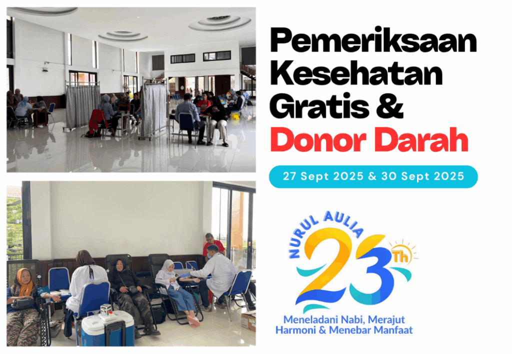 Alhamdulillah, dalam rangkain Milad ke-23 tahun Yayasan Nurul Aulia mengadakan kegiatan sosial. Pertama Pemeriksaan dan Pengobatan Gratis untuk warga RW...